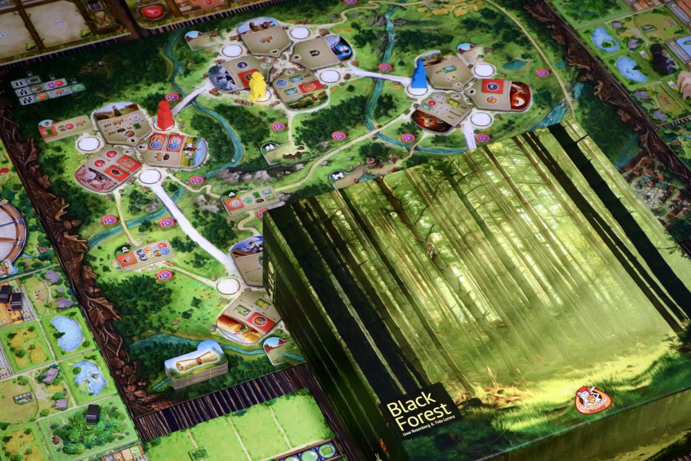 « Black Forest est principalement une conception de Rosenberg. Uwe m’a montré ce jeu en 2012 !, mais nous avons décidé d’opter pour le design « plus petit » de Glass Road à cette époque. Alors que Glass Road a été publié peu après en 2013, Black Forest attendait sur nos étagères depuis un bon moment. Dans sa conception originale, Black Forest avait un mécanisme de sélection d’action similaire à celui de Glass Road (cartes spécialisées). Si nous avons beaucoup aimé ce mécanisme, nous voulions quelque chose de différent pour Black Forest. Et c’est là qu’intervient Tido : il a transformé les cartes spécialisées en un village avec l’aspect de voyage. »