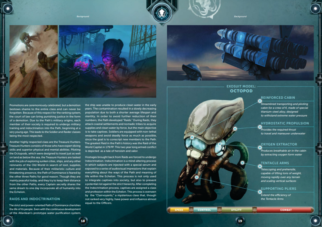 Je vous receommande fortement de jetter un oeil au livre Art & Story of Anachrony, inclus dans les boîtes de Leaders sous forme de livret imprimé, est disponible en téléchargement en PDF ici. Le livre se présente comme un véritable guide de l’histoire du jeu, pensé pour immerger le lecteur dans l’univers d’Anachrony. Il met en lumière les origines des quatre Voies, leurs leaders ainsi que leurs exosquelettes, tout en offrant une superbe sélection des plus belles illustrations et visuels du jeu.