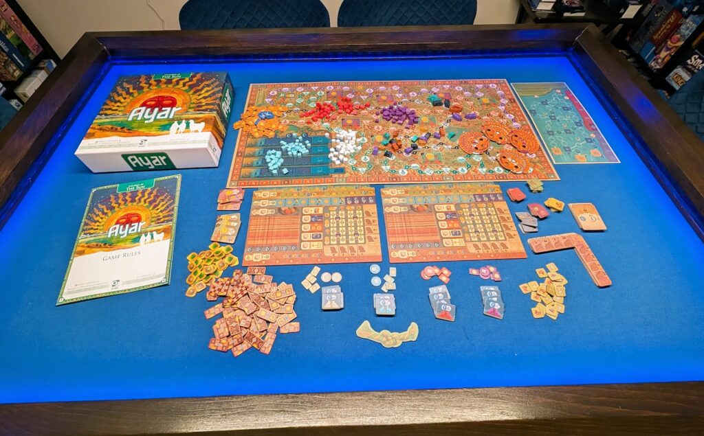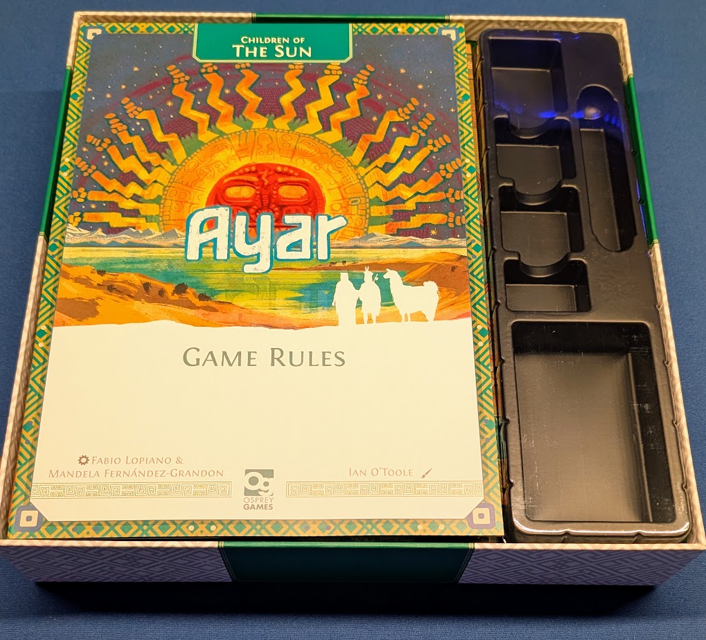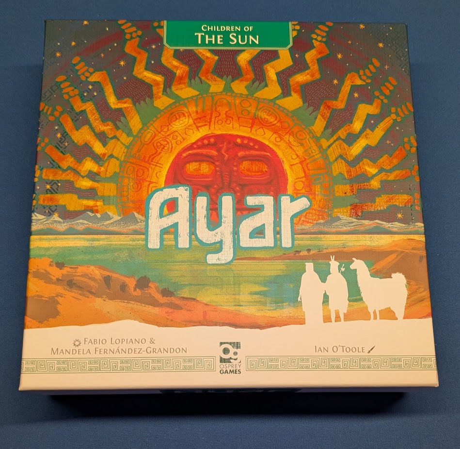 Dans le jeu Ayar: Children of the Sun, vous allez dirigez l’un des premiers clans accompagnant les Ayar, les quatre fils et quatre filles nés de l’union du dieu du soleil Inti et de la déesse de la lune Mama Quilla, dans leur voyage à travers les Andes, afin de maîtriser agriculture, poterie, tissage et fabrication de radeaux de roseaux. Vos actions doivent à la fois développer votre clan personnel et influencer l’avancement des Ayar : ceux que vous favorisez récompensent vos compétences, tandis que celui que vous négligez pourrait vous priver de précieux points. La particularité du jeu réside dans son système de double score (points Soleil et Lune) où seul votre score le plus faible compte à la fin.