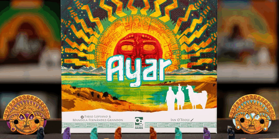 Dans le jeu Ayar: Children of the Sun, vous allez dirigez l’un des premiers clans accompagnant les Ayar, les quatre fils et quatre filles nés de l’union du dieu du soleil Inti et de la déesse de la lune Mama Quilla, dans leur voyage à travers les Andes, afin de maîtriser agriculture, poterie, tissage et fabrication de radeaux de roseaux. Vos actions doivent à la fois développer votre clan personnel et influencer l’avancement des Ayar : ceux que vous favorisez récompensent vos compétences, tandis que celui que vous négligez pourrait vous priver de précieux points. La particularité du jeu réside dans son système de double score (points Soleil et Lune) où seul votre score le plus faible compte à la fin.