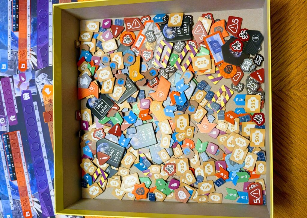 Le tout dernier jeu qui sera publié par Ludonaute aurait recu beaucoup d’amour. Les commentaires des joueurs l’annoncent comme un titre offrant une expérience unique. Il s’agit d’un jeu de civilisation et de gestion où l’on doit équilibrer de nombreux éléments au sein de sa nation, plutôt que de produire sans limite. Ce jeu reflète les défis auxquels notre planète est confrontée aujourd’hui et semble proposer un excellent casse-tête !
