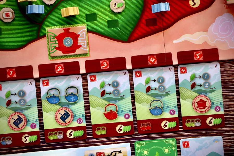 La spécialisation est recommandée plutôt que de s’éparpiller, ce qui donne lieu à des choix déchirants. Tenterez-vous de placer tous vos jardins de thé et vos pagodes ? Préférerez-vous descendre le cours de la rivière ? Miserez-vous tout sur les plateaux de thé ou sur l’acquisition massive de cartes caravane ?